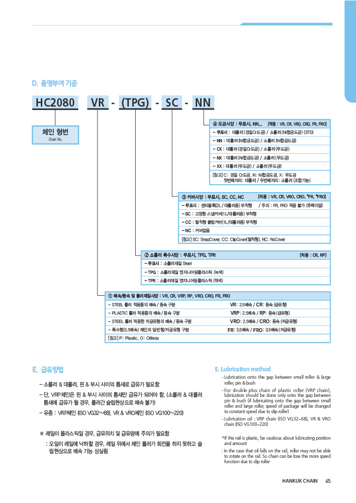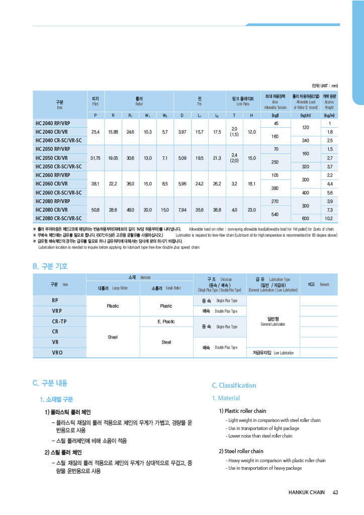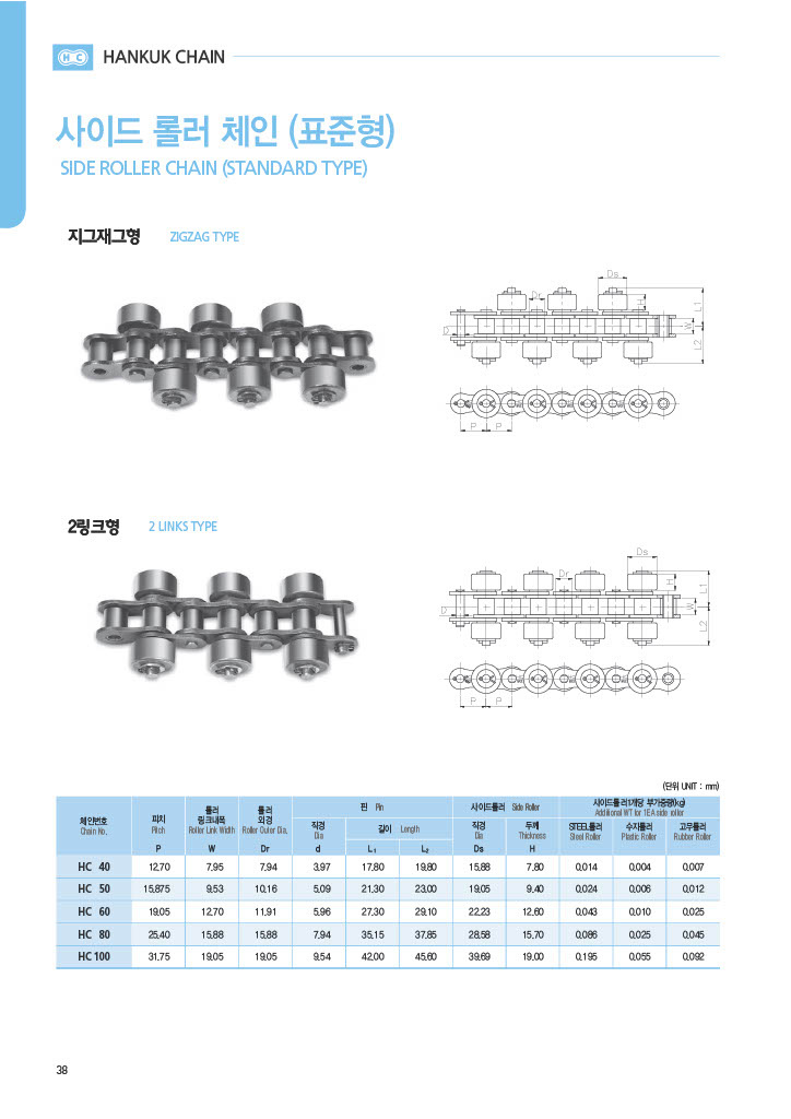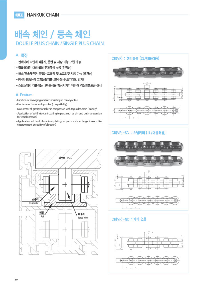 프리플로우 체인 경, 중량물 수송 컨베이어라인에 적용되며 운반물의 반송과 저장이 가능 엔진 가공, 조립, 테스트라인, 전기 전자기기 등과 같은 생산라인을 사용합니다. 등속 / 배속 체인(컨베이어용) 사이드롤러 체인(RS, DP) 톱 롤러 체인 (RS, DP) chain CATALOG 다운 chain cad도면 다운